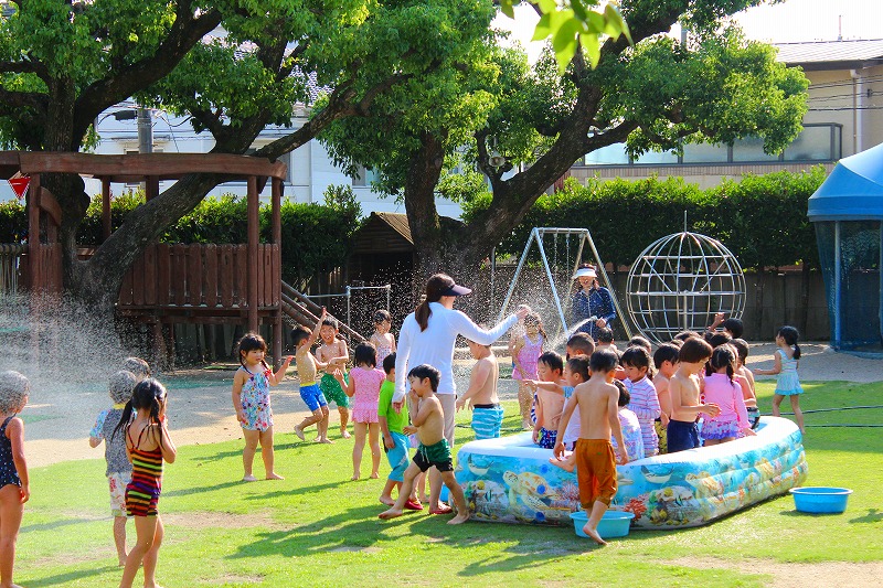 2019.07.04 / 最終更新日 : 2019.09.09 イベント お泊り保育の第一日目、無事終了 晴天に恵まれた中、お泊り保育の一日目が無事終了しました。全員元気で泣く子もなく、眠りにつきました。 ピンぼけですがお買い物ごっこ 沢山あるね! いらっしゃいいらっしゃい! どのおやつがいいかな… ヨーヨーもあるよ むずかしいぞ! 選んだおやつをみんなで・ ヨーヨーもしよっと! お次は水遊び! 虹も見えたよ! 暑さも吹っ飛びました みんなで椅子を運んだら… お待ちかねの夕食です 食後はもちろんお掃除 長い夏の日も暮れてきました うらじゃ音頭です お次は花火大会! 楽しいことが続きます 50連発花火も離れて見ました いよいろ就寝時間です 飲み残しのお茶も捨てて 歯磨きと洗面… 寝る前は絵本だ! 一日の終わり、ハイ、チーズ!